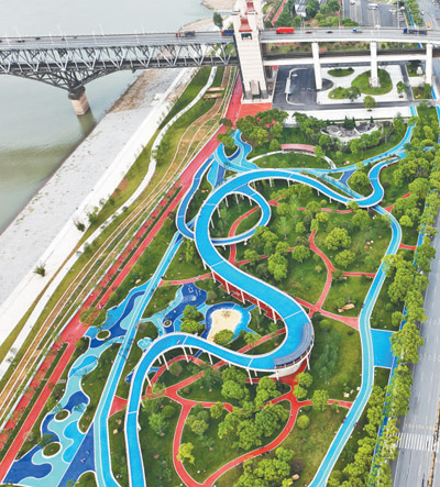江西省九江市,长江国家文化公园九江城区段岸线美景。该项目对滨江路沿线共11公里岸线进行升级改造,打造长江美丽岸线。