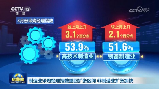 中国物流与采购联合会、国家统计局服务业调查中心今天(3月31日)公布3月份中国采购经理指数。制造业采购经理指数重回扩张区间,景气水平明显提升,非制造业继续加快扩张。